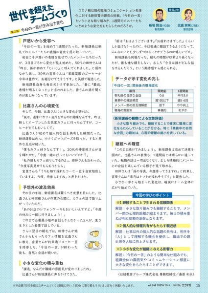本稿では、ある管理職が始めた「今日の一言」という小さな取り組みが、