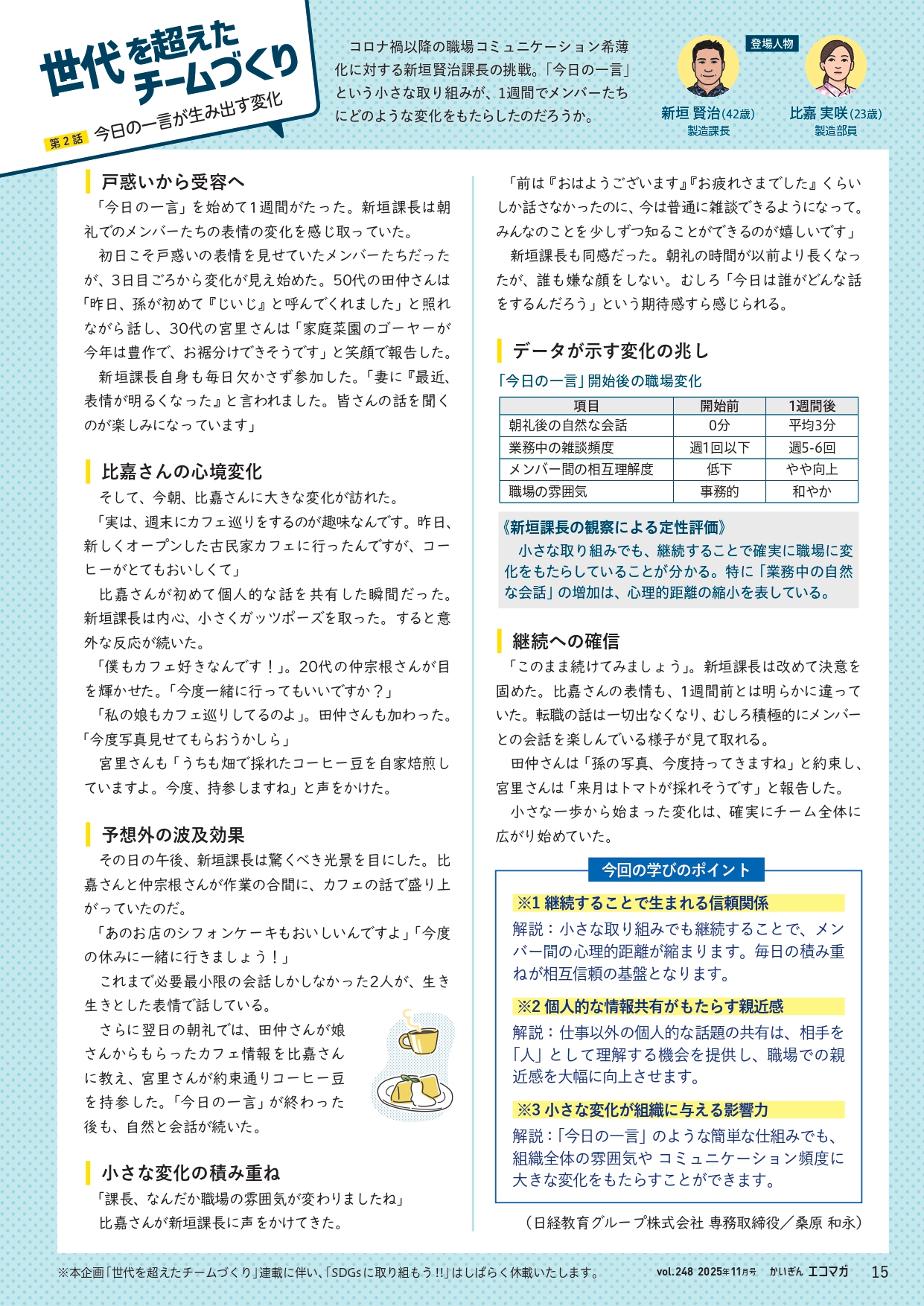 ― テーマ「世代を超えたチームづくり」 第2話:今日の一言が生み出す変化 ―