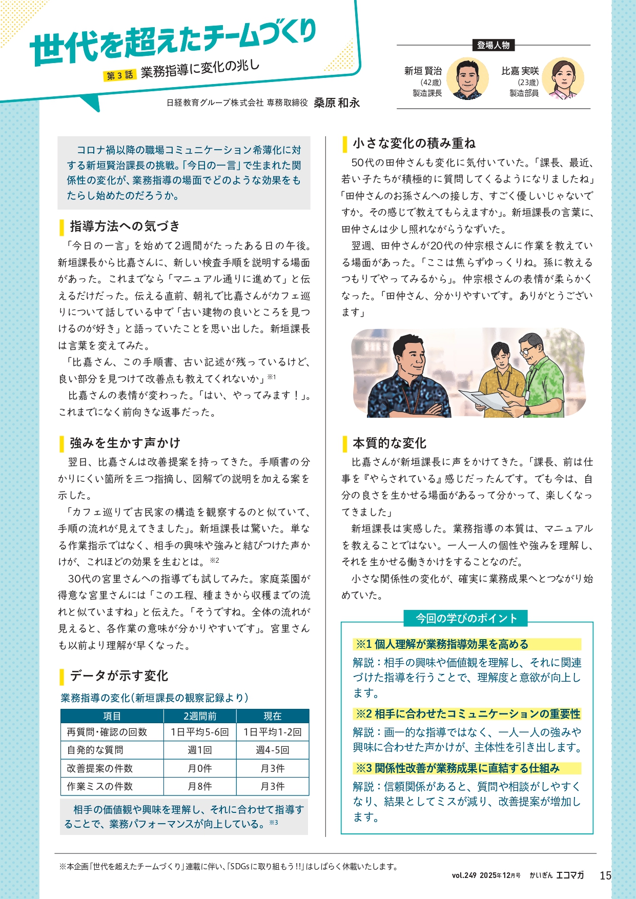 ― テーマ「世代を超えたチームづくり」 第3話:業務指導に変化の兆し ―