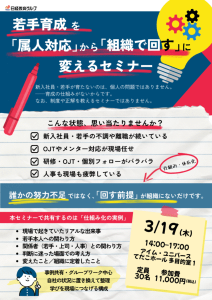 【受付中】若手育成を「属人対応」から「組織で回す」に変えるセミナー